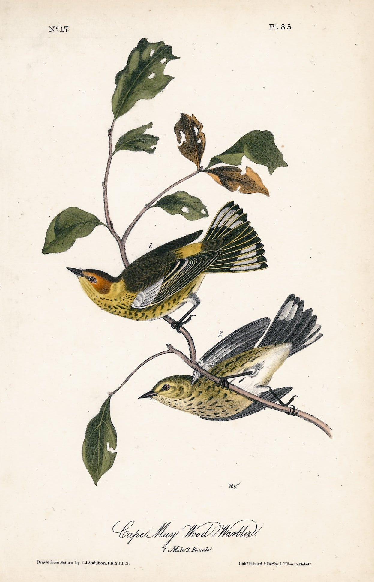 AUDUBON, John James (1785 - 1851), Cape May Wood Warbler (Plate 85), 1839-1844