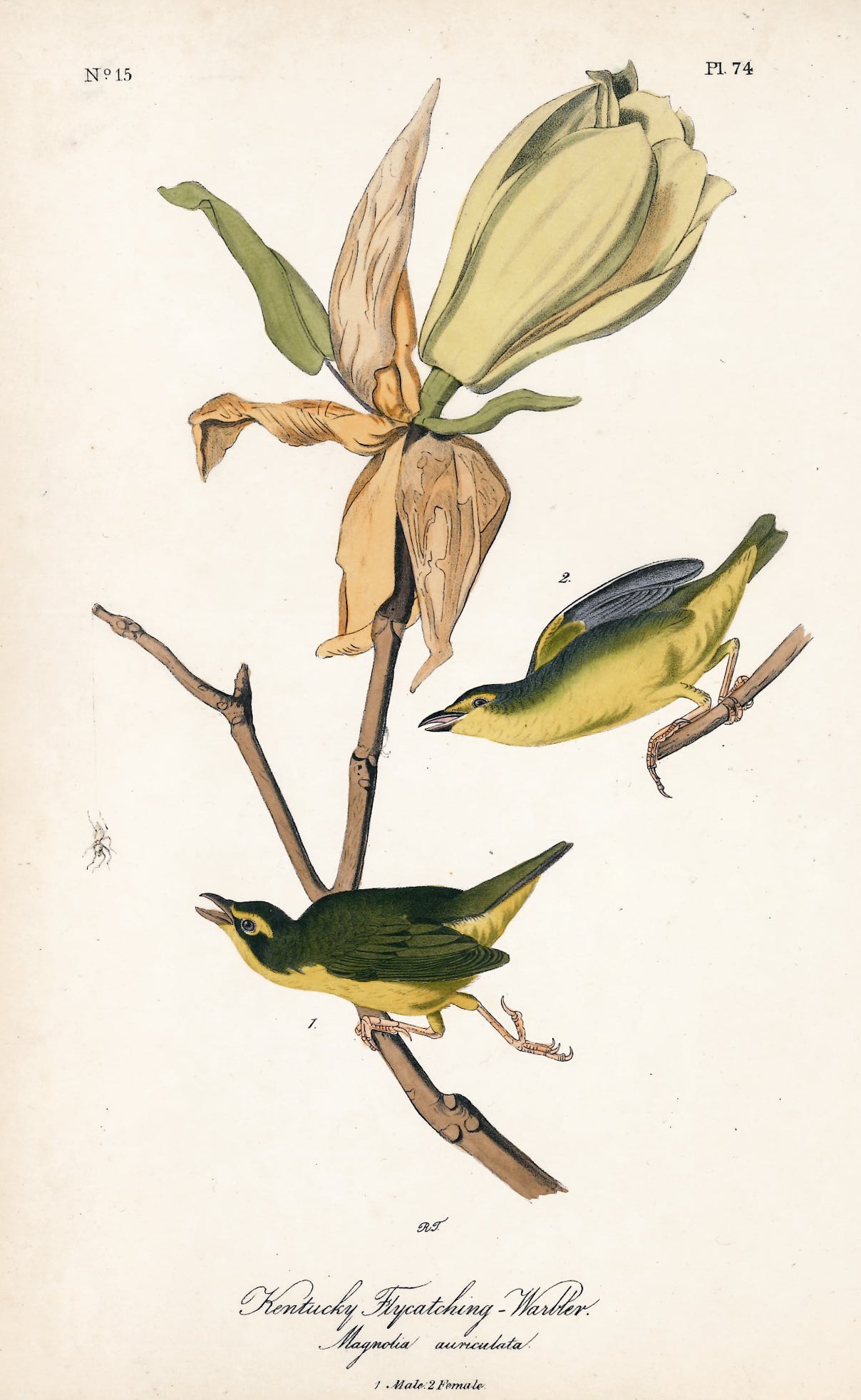 AUDUBON, John James (1785 - 1851), Kentucky Fly Catching Warbler (Plate 74), 1839-1844