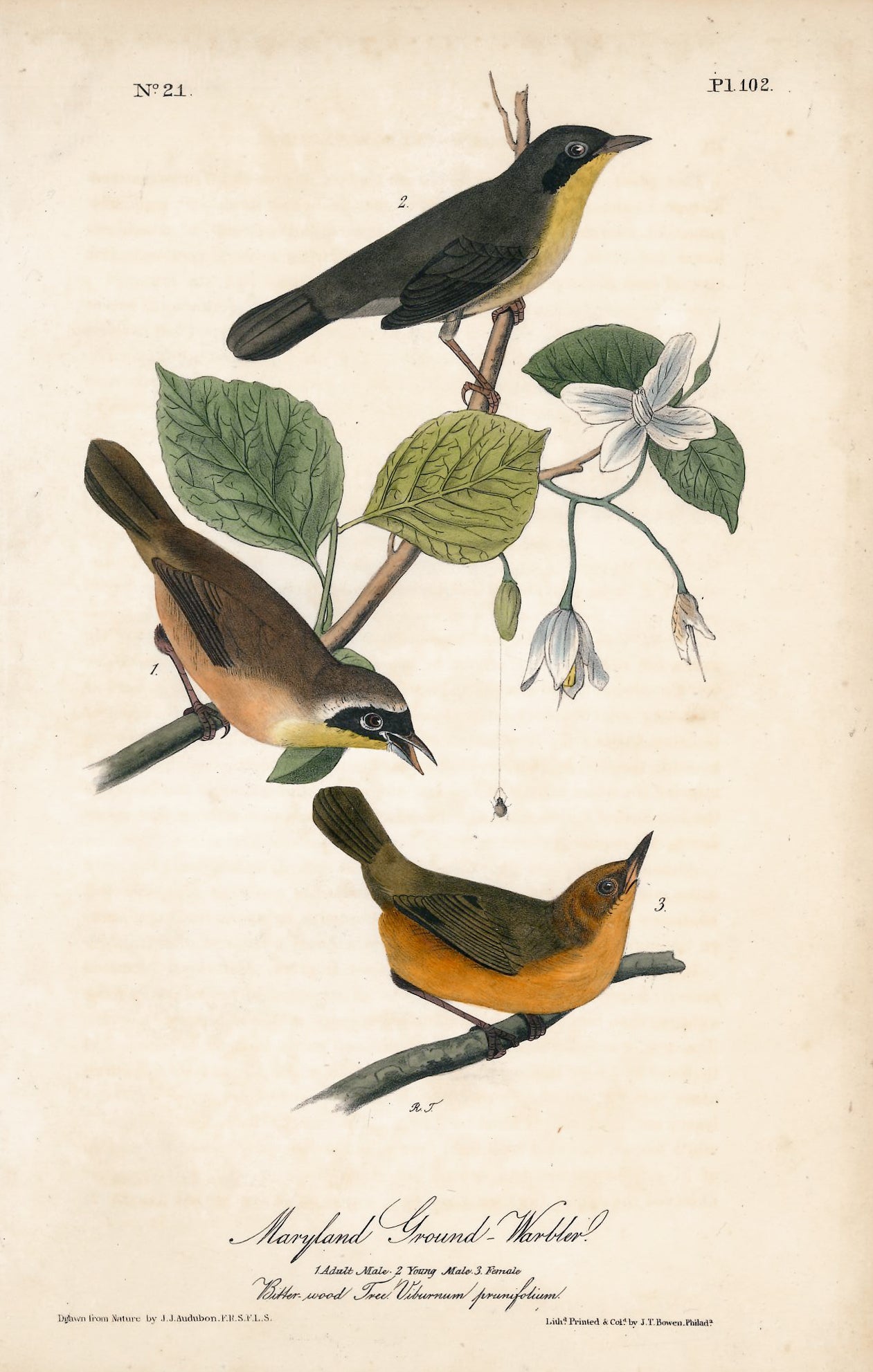 AUDUBON, John James (1785 - 1851), Maryland Ground Warbler (Plate 102), 1839-1844