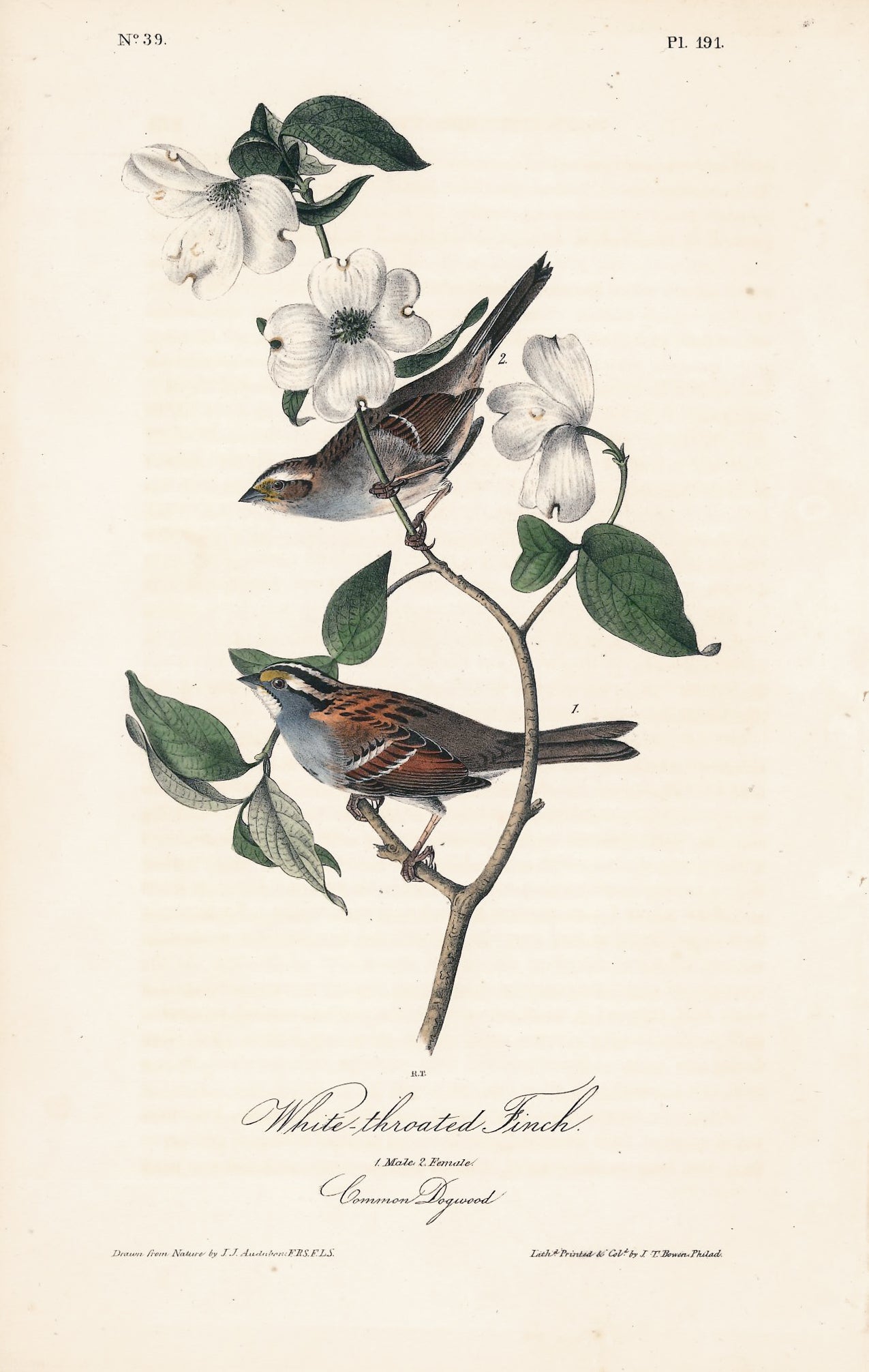 AUDUBON, John James (1785 - 1851), White Throated Finch (Plate 191), 1839-1844