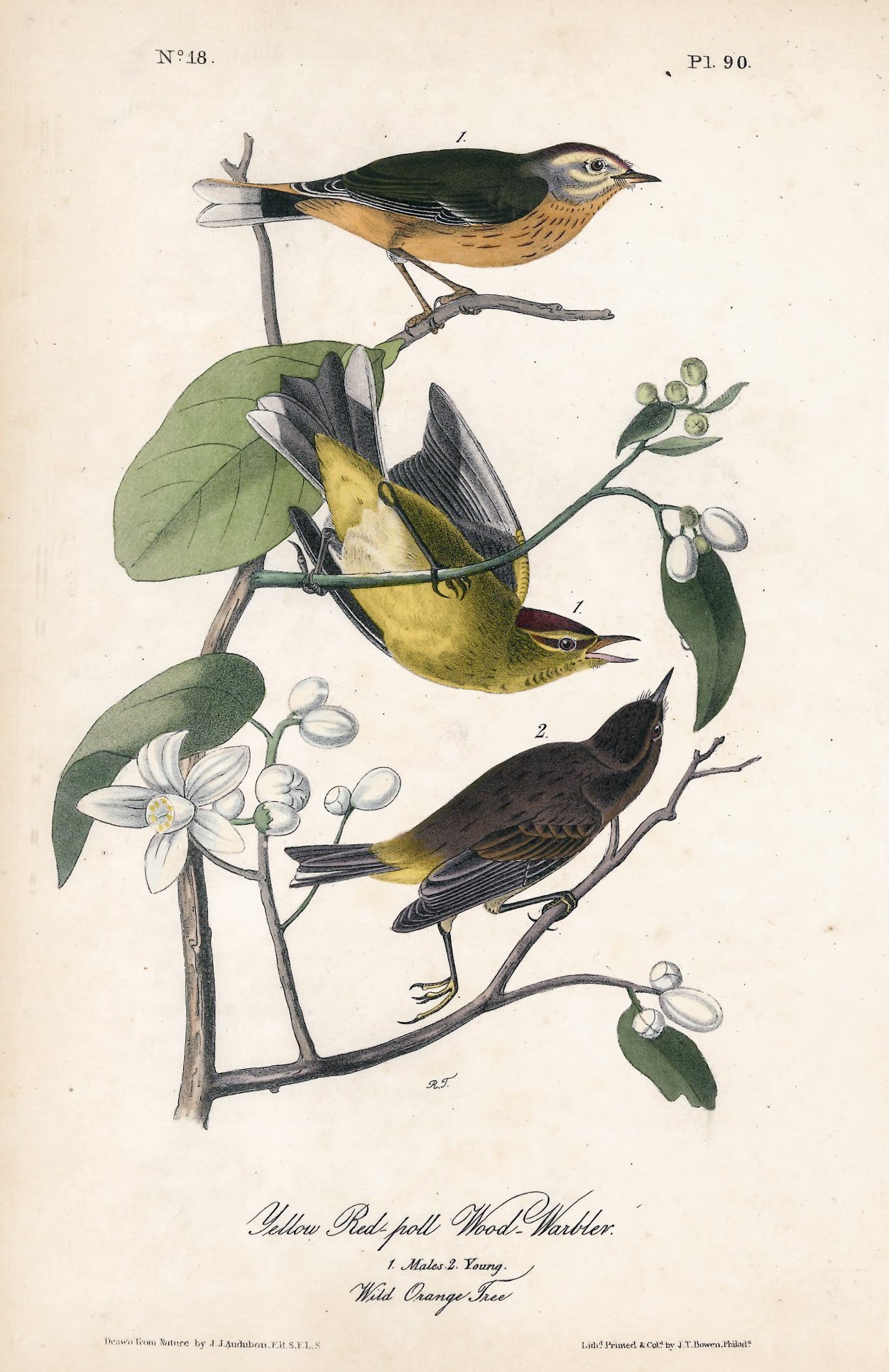 AUDUBON, John James (1785 - 1851), Yellow Red Poll Wood Warbler (Plate 90), 1839-1844