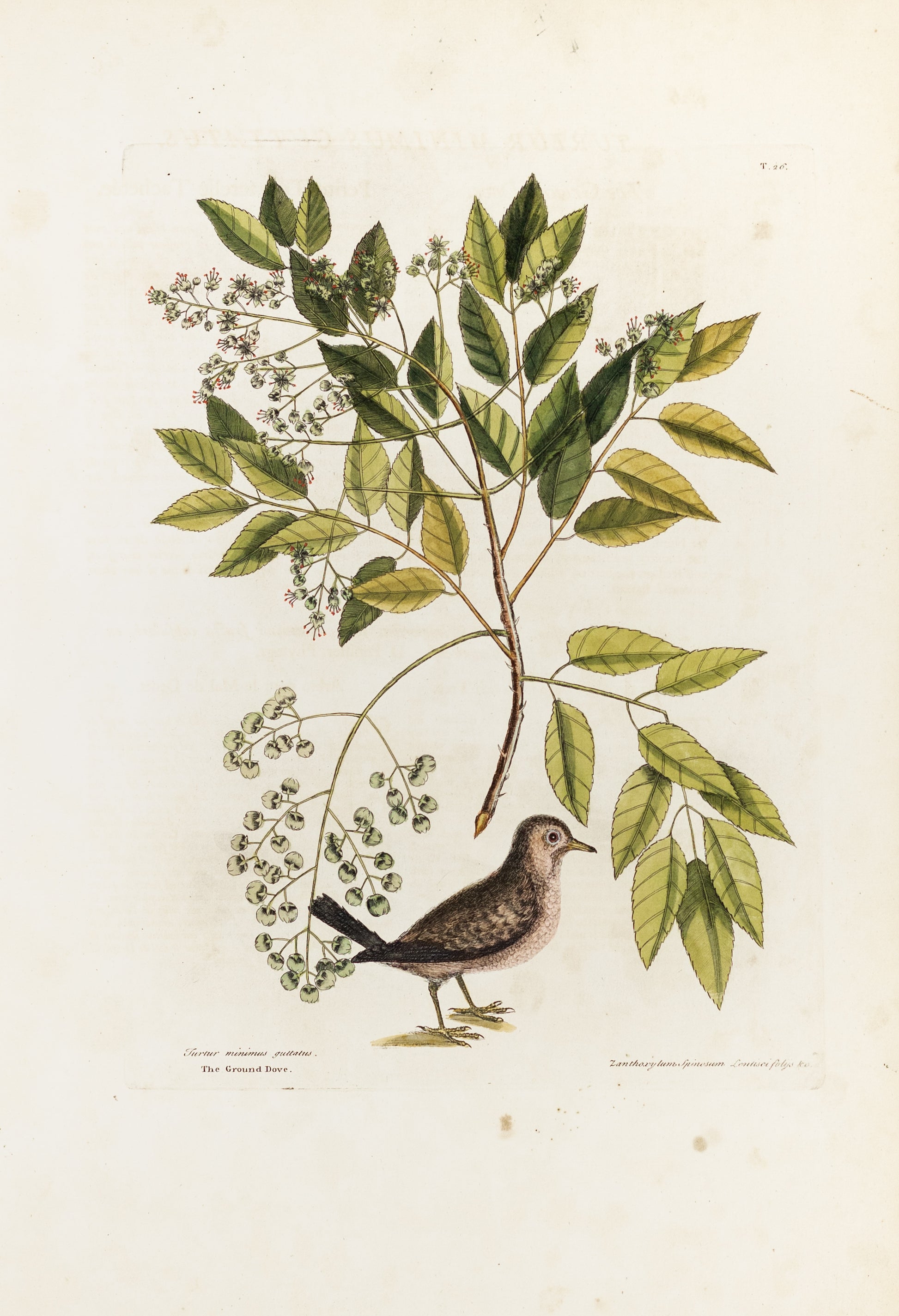 Currently known as the common ground-dove, Columbina passerina and Hercules' club, Zanthoxylum clava-herculis*, Catesby described these subjects as follows: