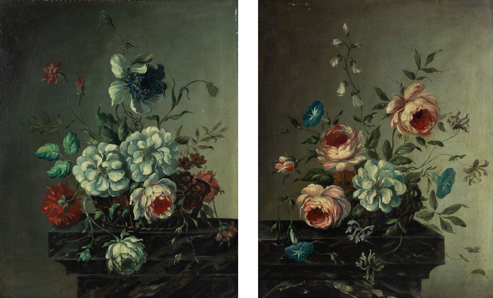 Pair of Still-Lifes of Flowers on a Ledge