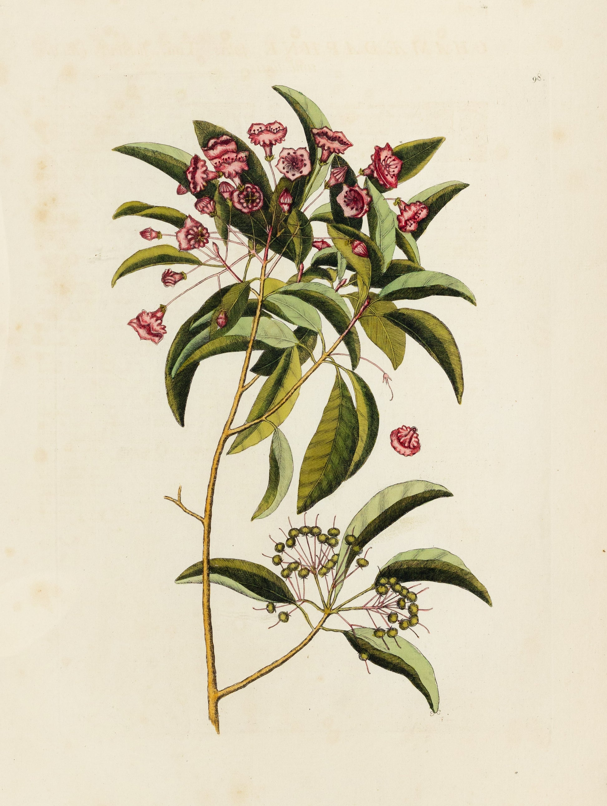 Currently known as the mountain laurel, Kalmia latifolia*, Catesby described this subject as follows: