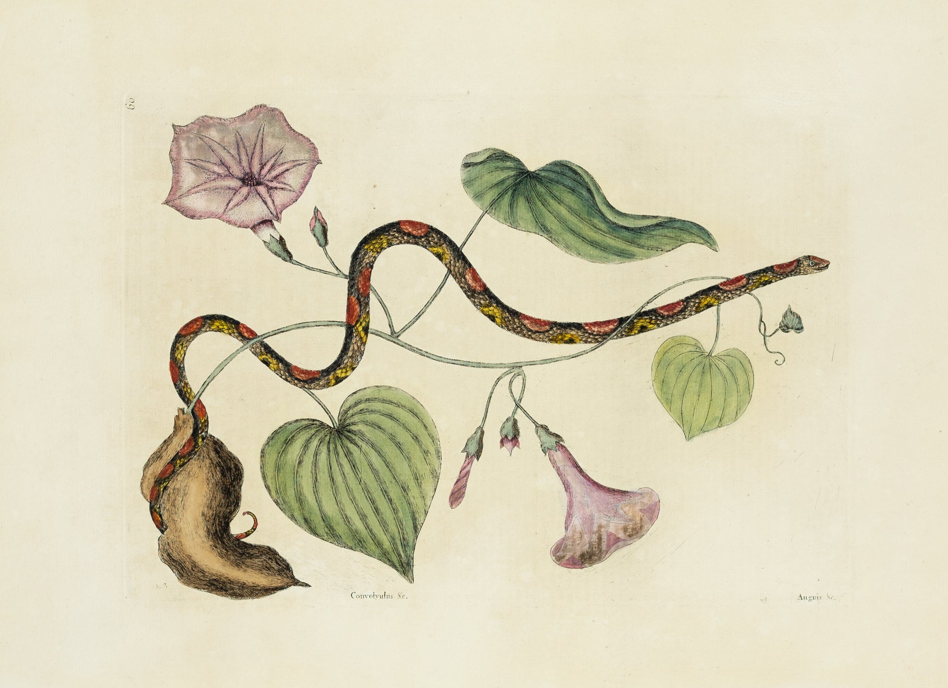 Catesby, Mark. Vol.II, Tab. 60, The Bead-Snake, The Virginian Potato