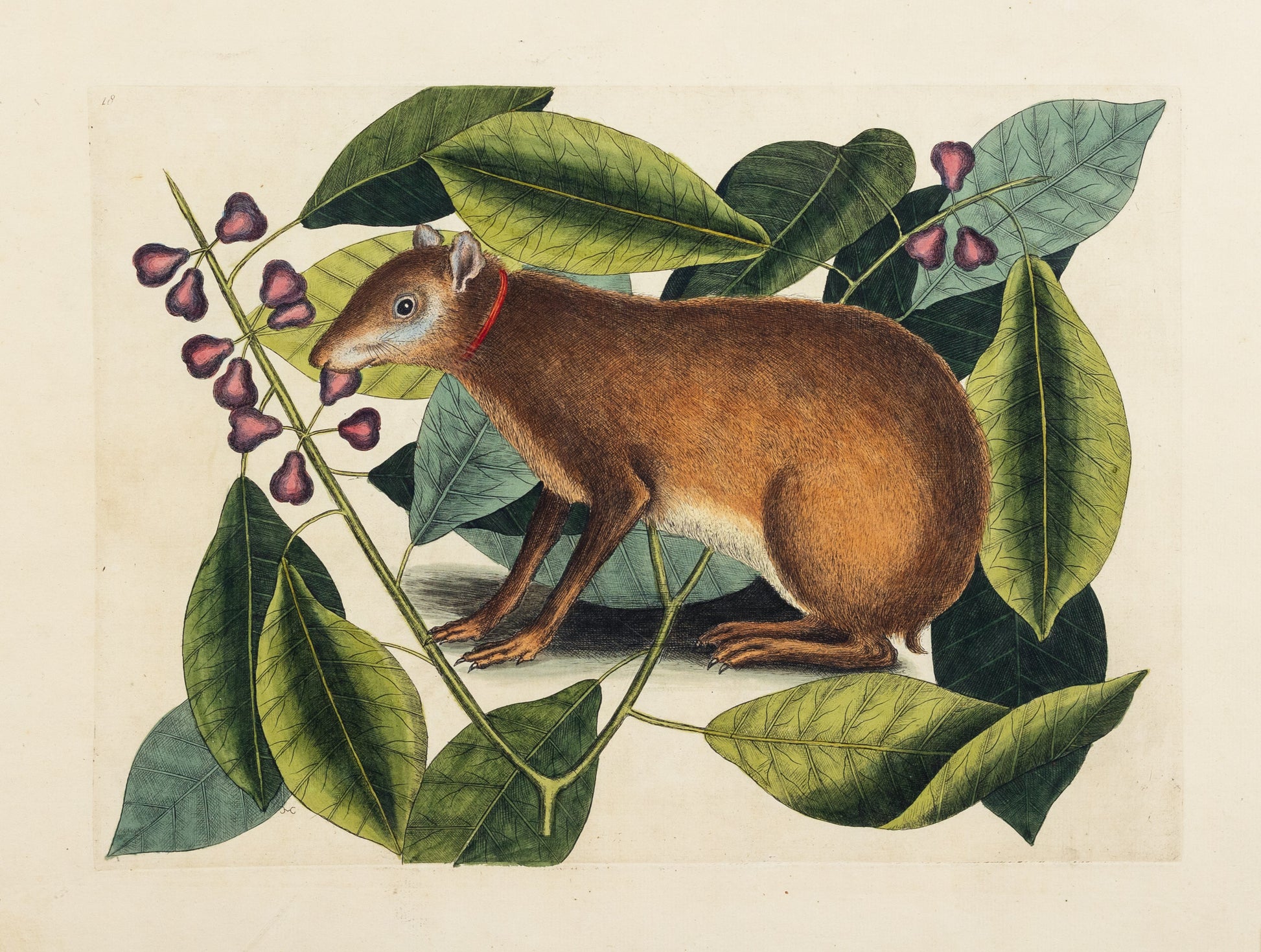 Currently known as the Brazilian agouti, Dasyprocta leporina and shortleaf fig or Jamaica cherry-fig, Ficus citrifolia*, Catesby described these subjects as follows: