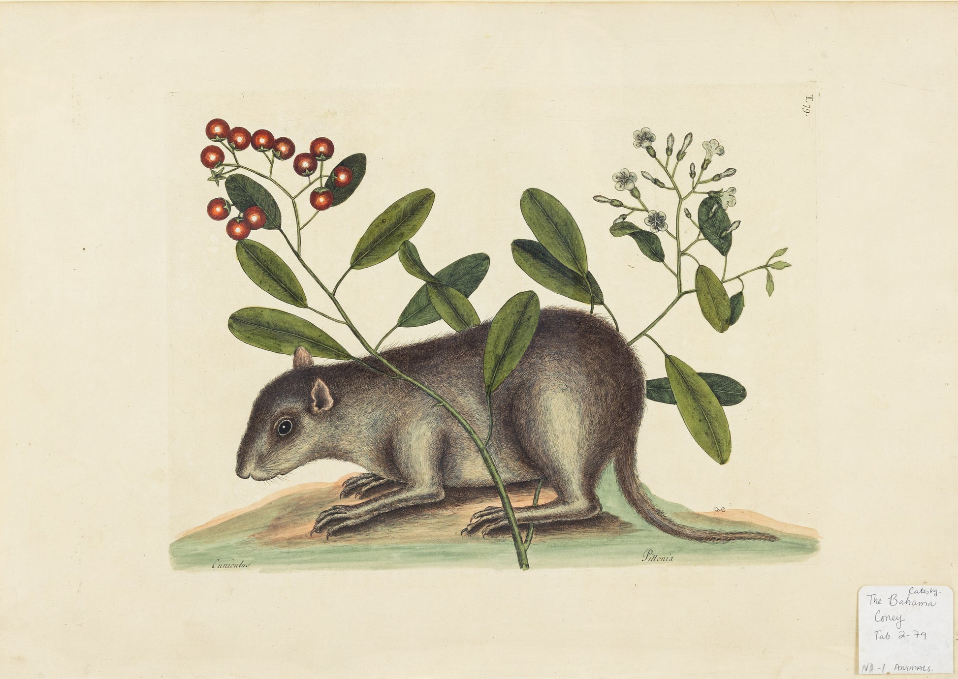 Currently known as the Bahamian hutia, Geocapromys ingrahami and bodywood, Bourreria succulenta*, Catesby described these subjects as follows: