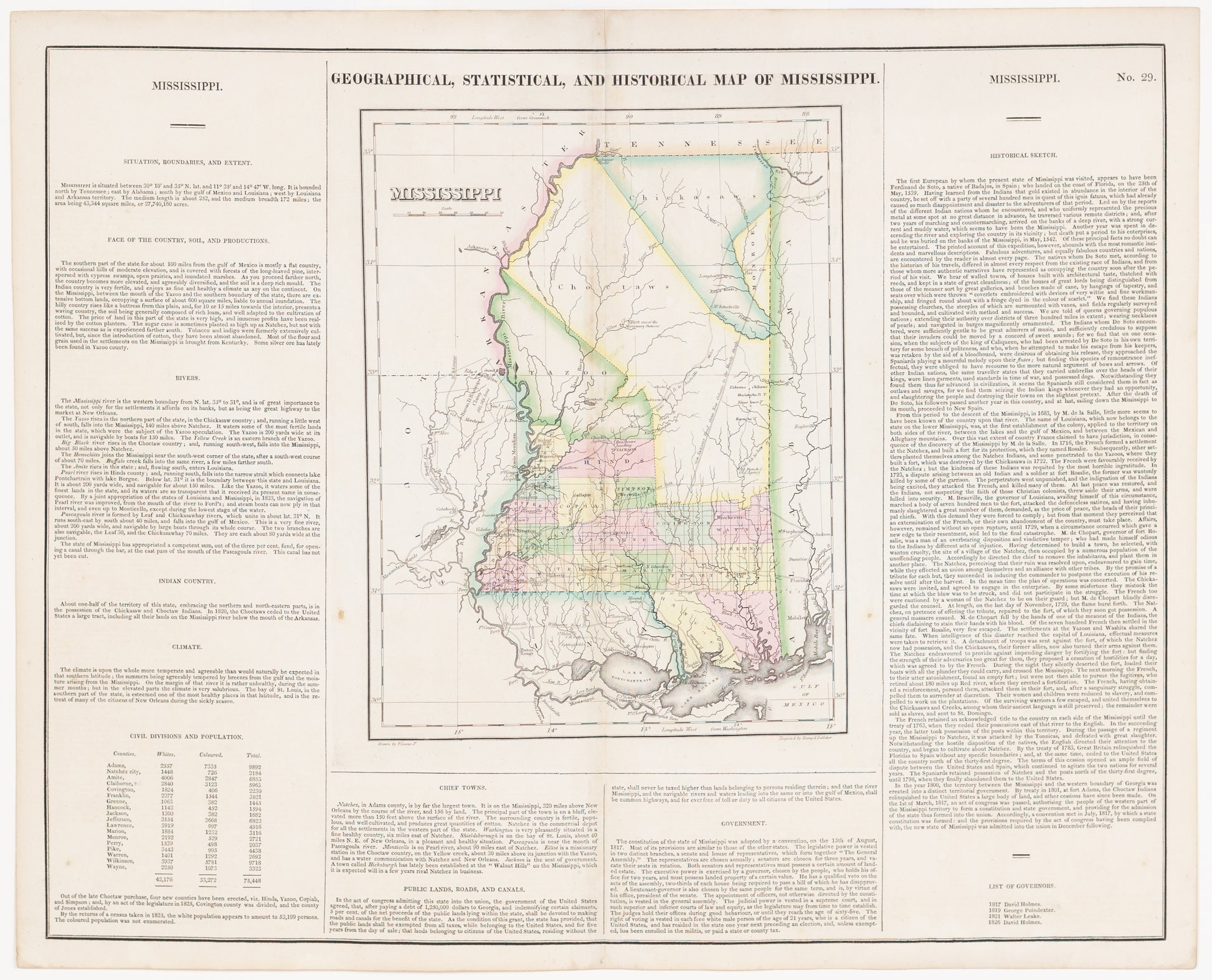 Carey, H.C. & Lea, I. Geographical, Statistical, and Historical Map of Mississippi. Philadelphia, 1827.