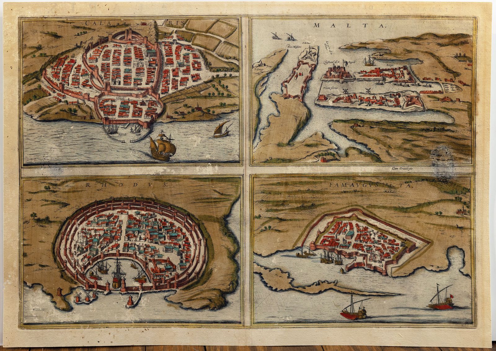 Braun & Hogenberg, [Cagliari, Malta, Rhodos and Famagusta] Calaris / Malta / Rhodus / Famaugusta
