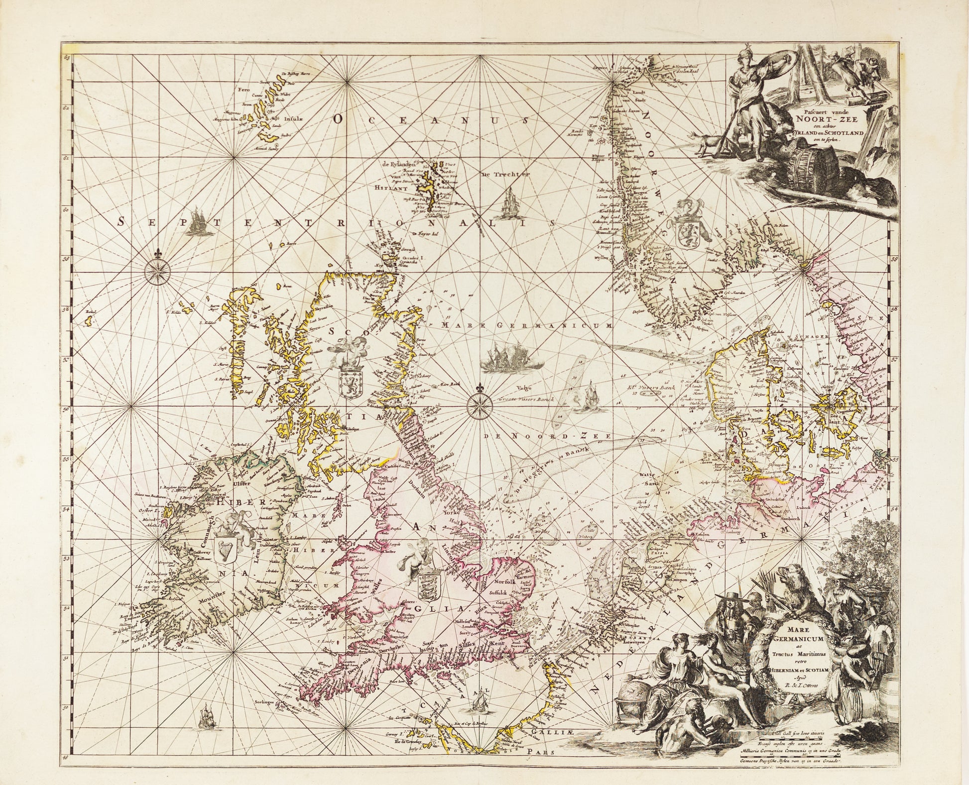 (The North Sea) Mare Germanicum ac Tractus Maritimus rerto Hiberniam et Scotiam | Pascaert vande Noort-Zee om achtr Yrland en Schotland om te Seylen