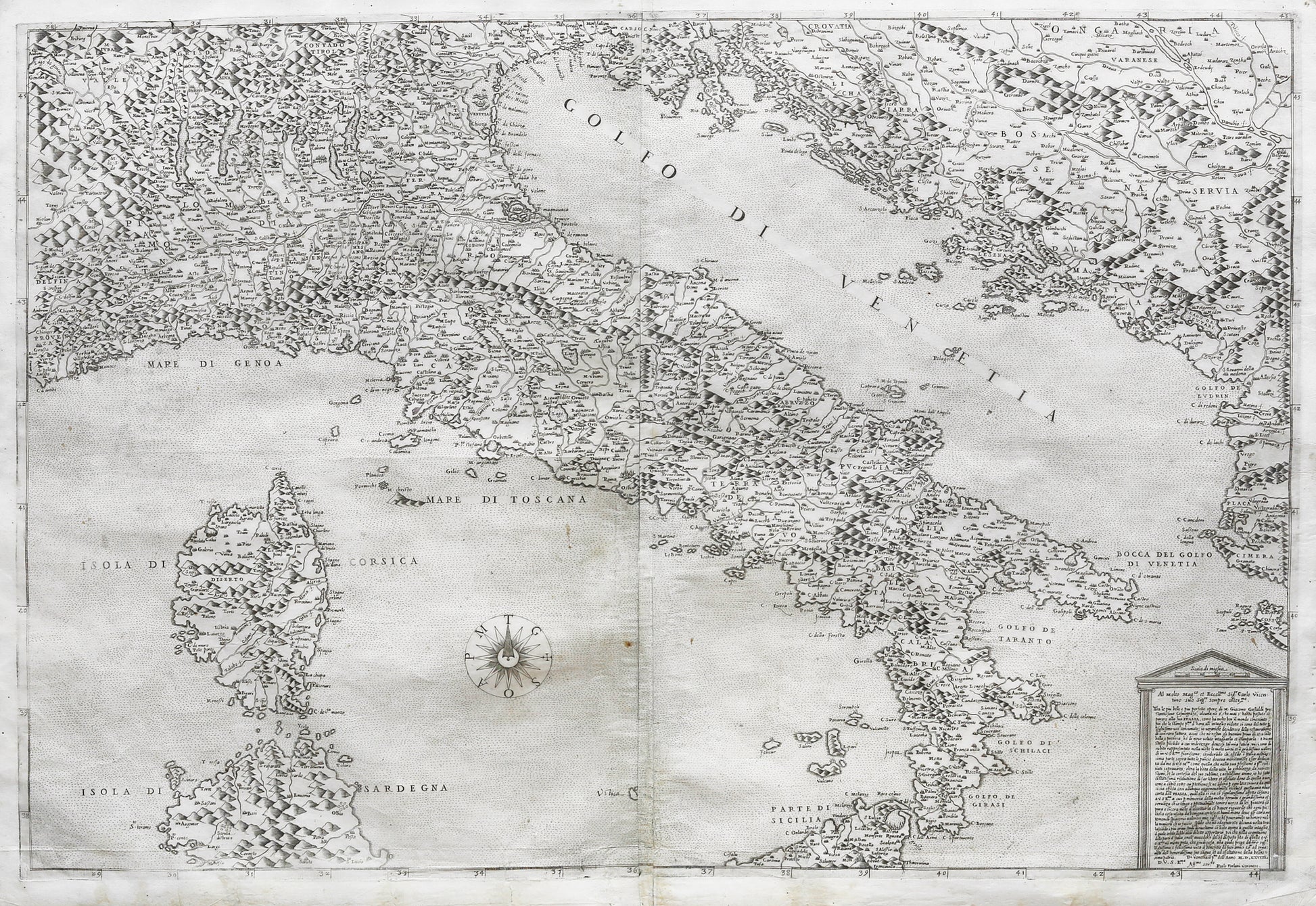 [Italy] [Ded. to Carlo Vicentino] Al Molto magno. et exccellmo Sigor. Carlo Vicentino sup sigor sempre ossexmo. Tra Ie piu belle e plu perfette opera di M. Giacomo Gastaldi prestantissimo Cosmografo, alcuna no e’ che mai s’habbi possuto coparare alla sua Italia .. . Di Venetia il pm« dell Anno MDLXVIIII Paolo Forlani Veronese.