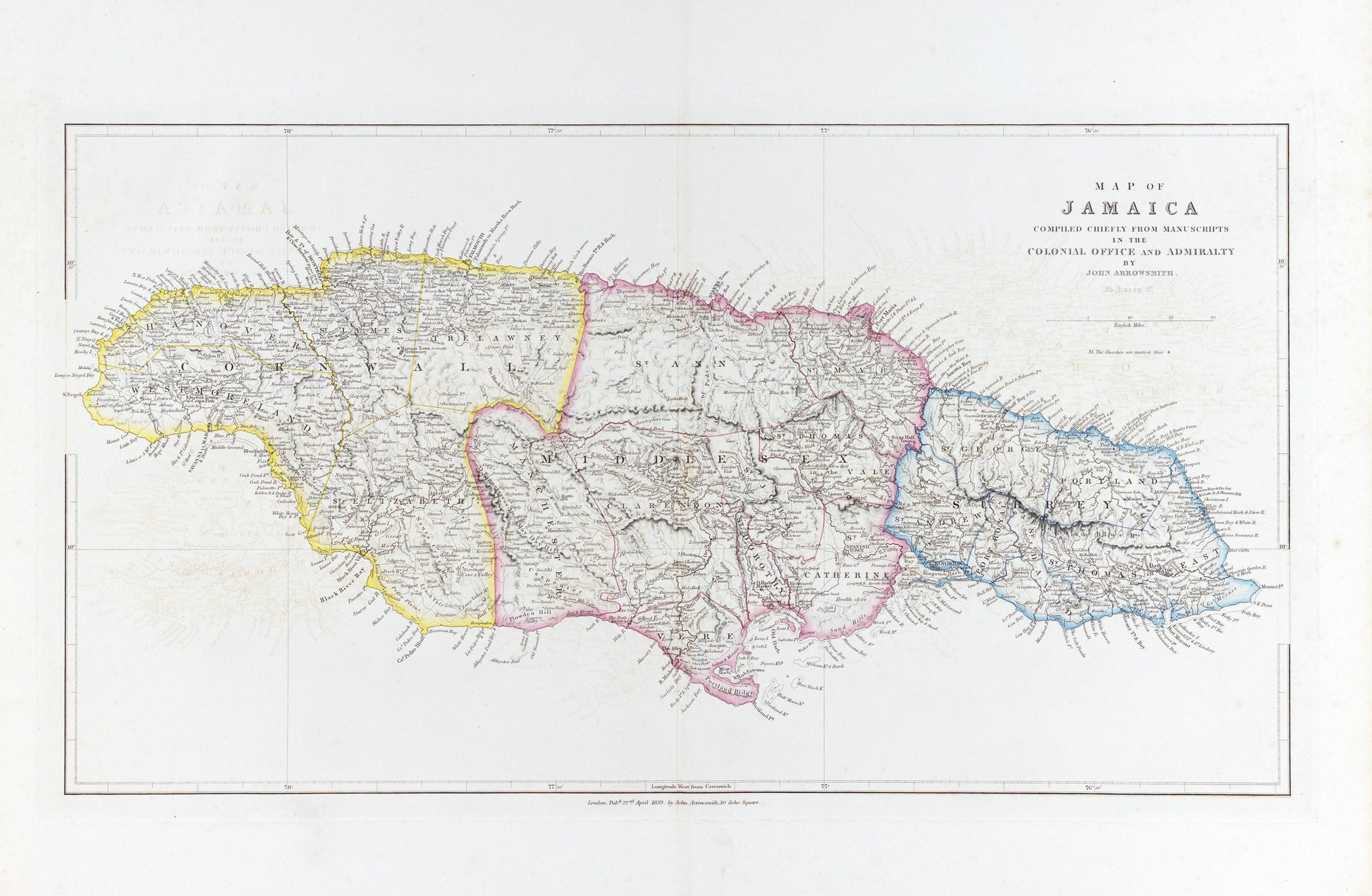 John Arrowsmith. Map of Jamaica. London, 1839.