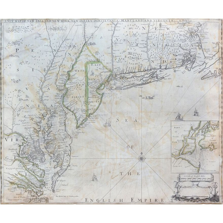 Philip Lea's New Map of New England, New York, New Jarsey, Pensilvania, Maryland and Virginia