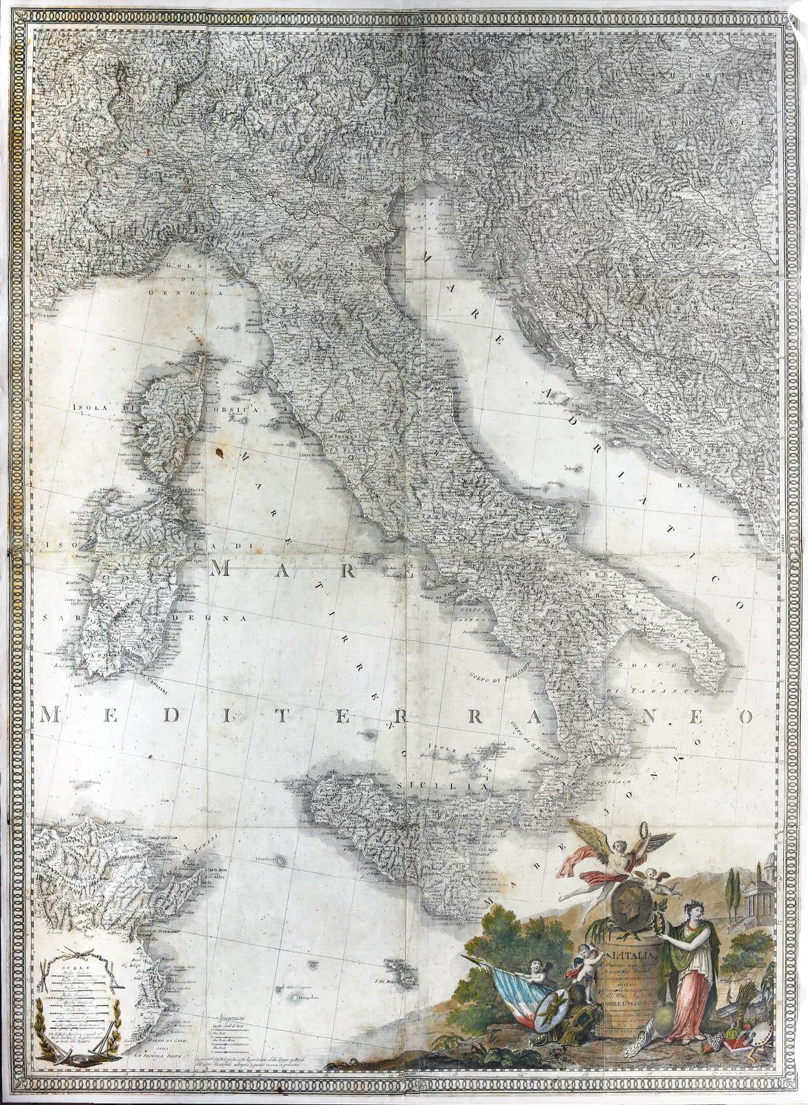 As one of the leading cartographers of his time, Rizzi-Zannoni combined scientific rigor with artistic finesse, producing a map that serves as a valuable document of Italy’s political, cultural, and economic development at the dawn of the 19th century.