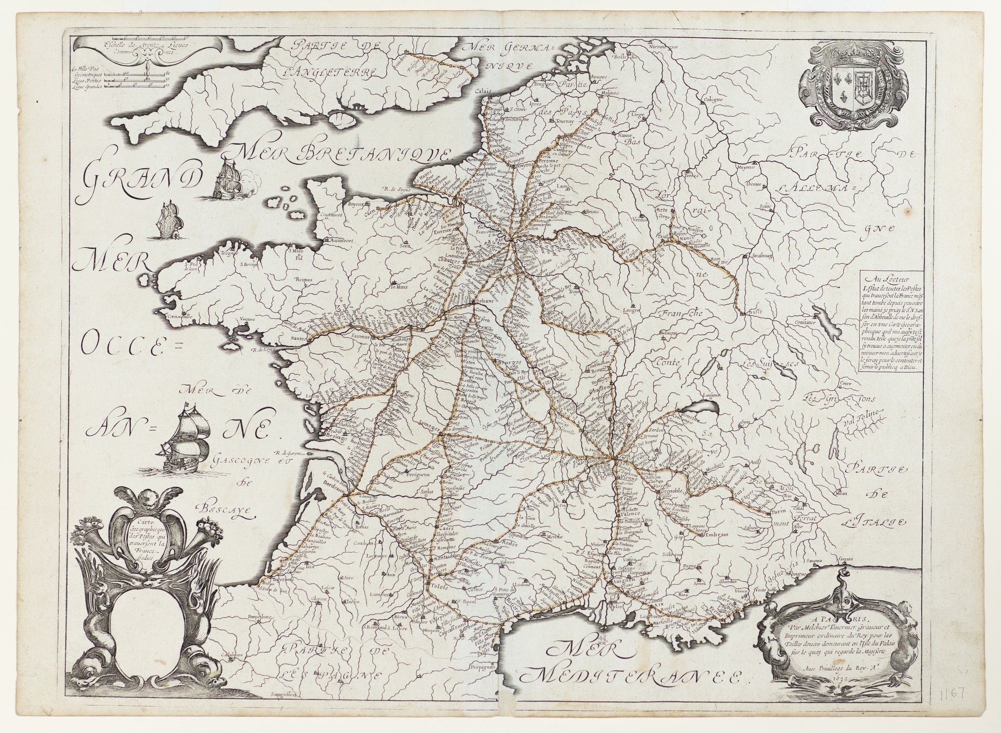 Sanson, Nicolas. Carte Geographique Des Postes Qui Traversent La France Dedièe. Paris, 1632.