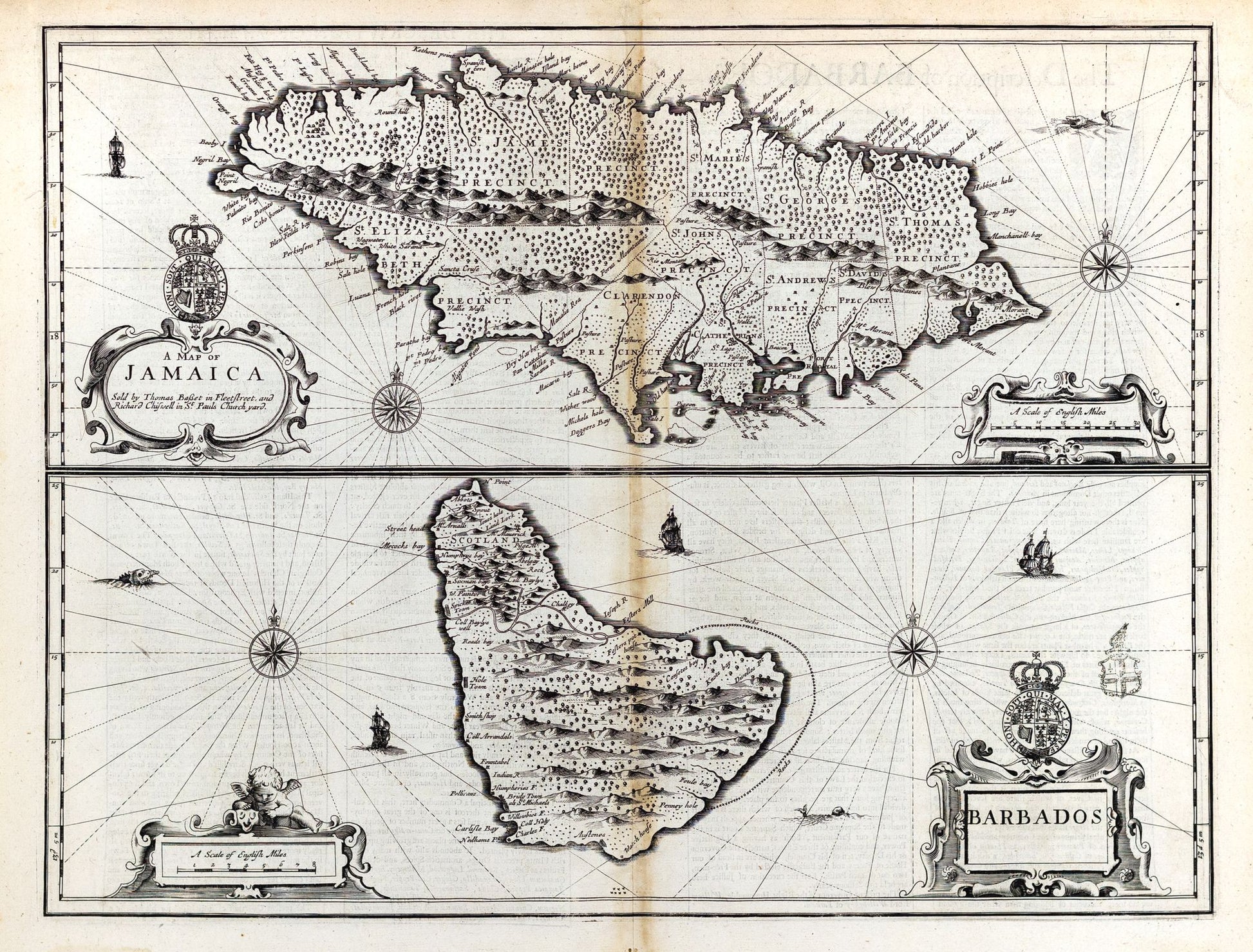 Speed. A Map of Jamaica and Barbados. London, 1676.