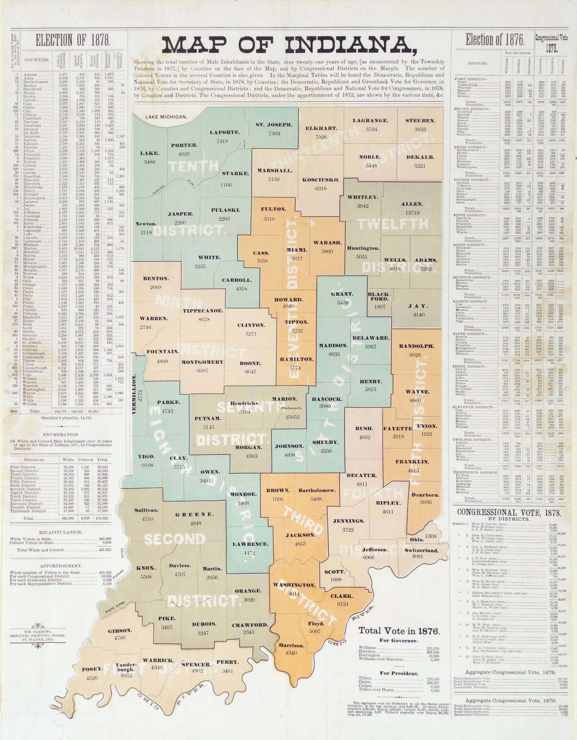 Wayne, F.T. Election Map of Indiana. Fort Wayne, Indiana: Wm. Fleming, c. 1878.