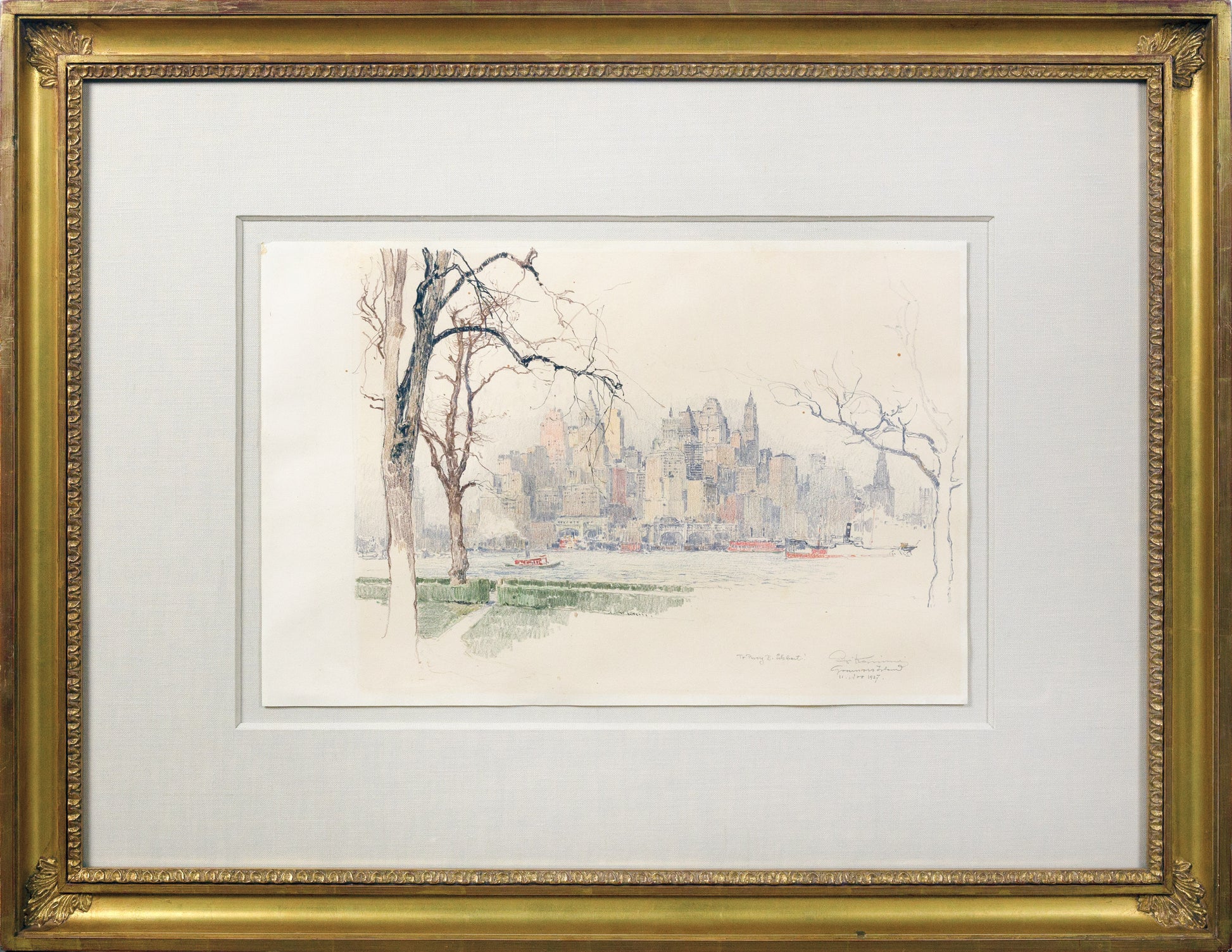 LUIGI KASIMIR (1881-1962). View of [New York from] Governor’s Island. 1927