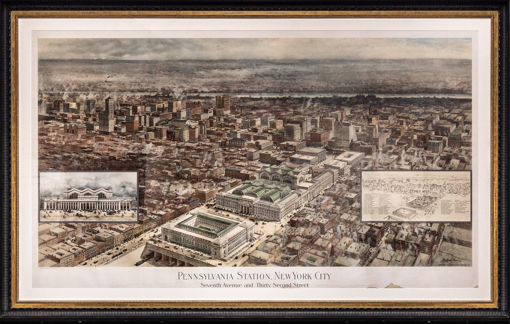 ANGELO MAGNANTI (1879-1969) Pennsylvania Station New York. 1946; HAWLEY HUGHSON (1850-1936), after Pennsylvania Station, New York City Seventh Avenue and Thirty-Second Street. 1910
