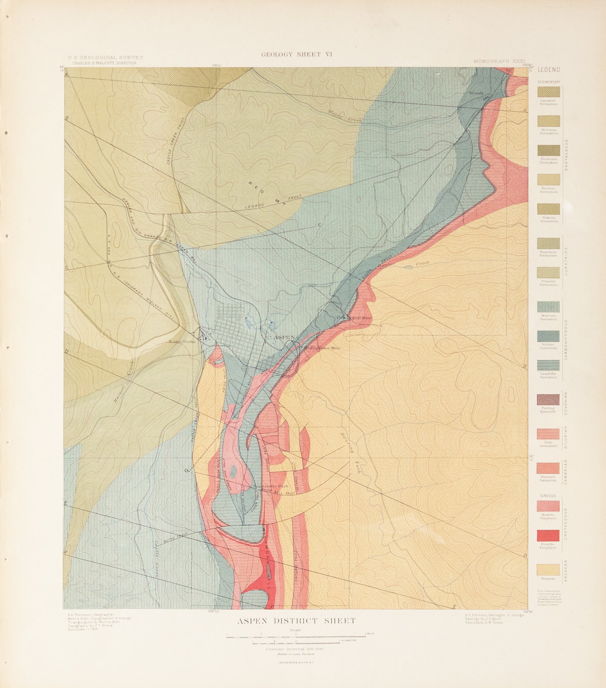 Bien, Morris. Aspen District Sheet Geology Sheet VI. 1891.