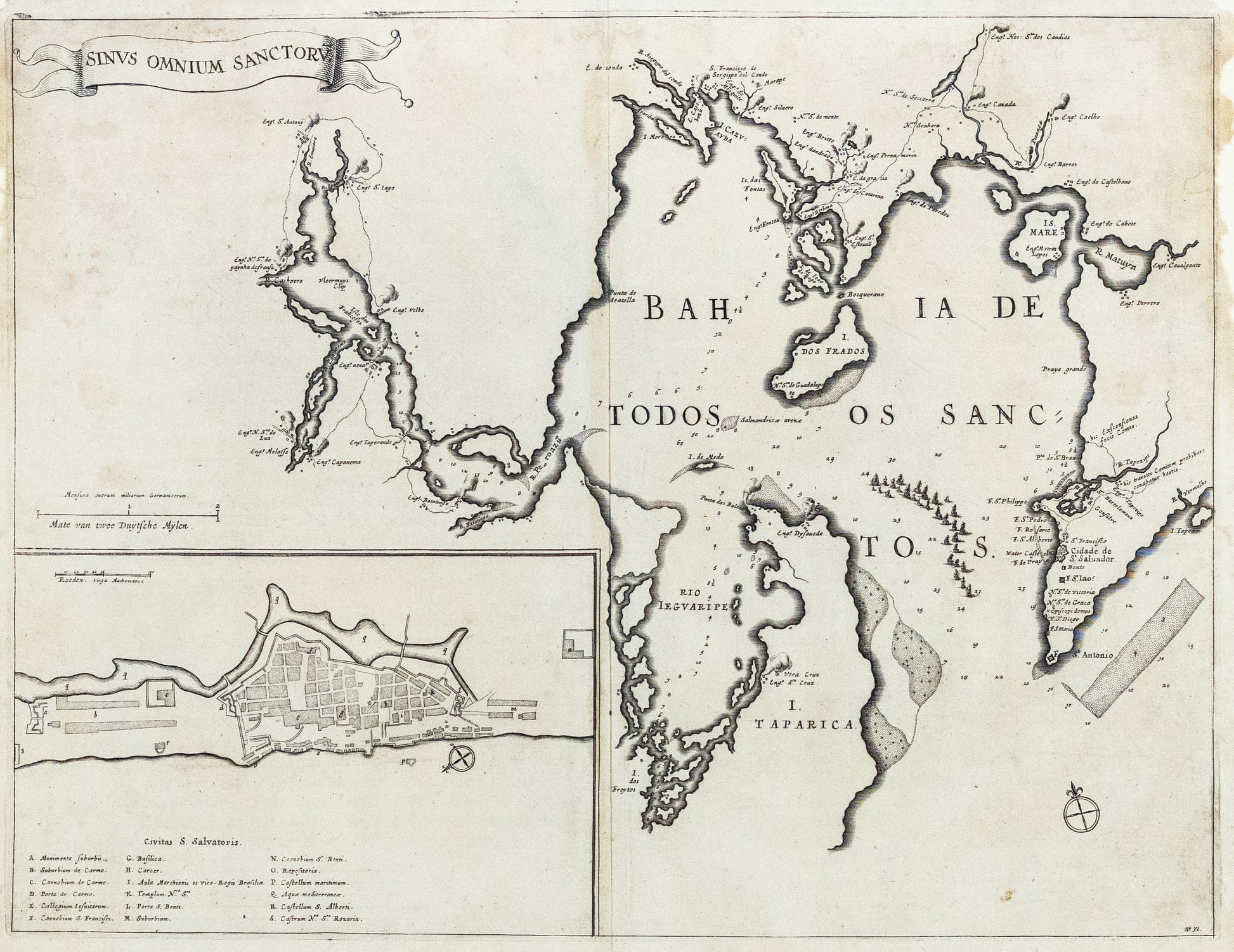 Blaeu, Johannes. Sinus Ominum Sanctoru. Salvador, 1647.