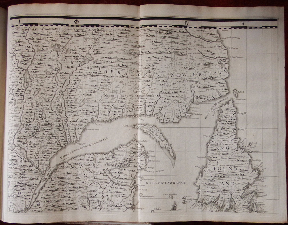 Of the four inset views, two are of special note. The first, of New York City, is an early copy of William Burgis's "South Prospect of the Flourishing City of New York," circa 1720. A second perspective view, of Quebec, is based on the manuscripts of Franquelin Joliet, which were previously published in French maps by De Fer and Châtelain.