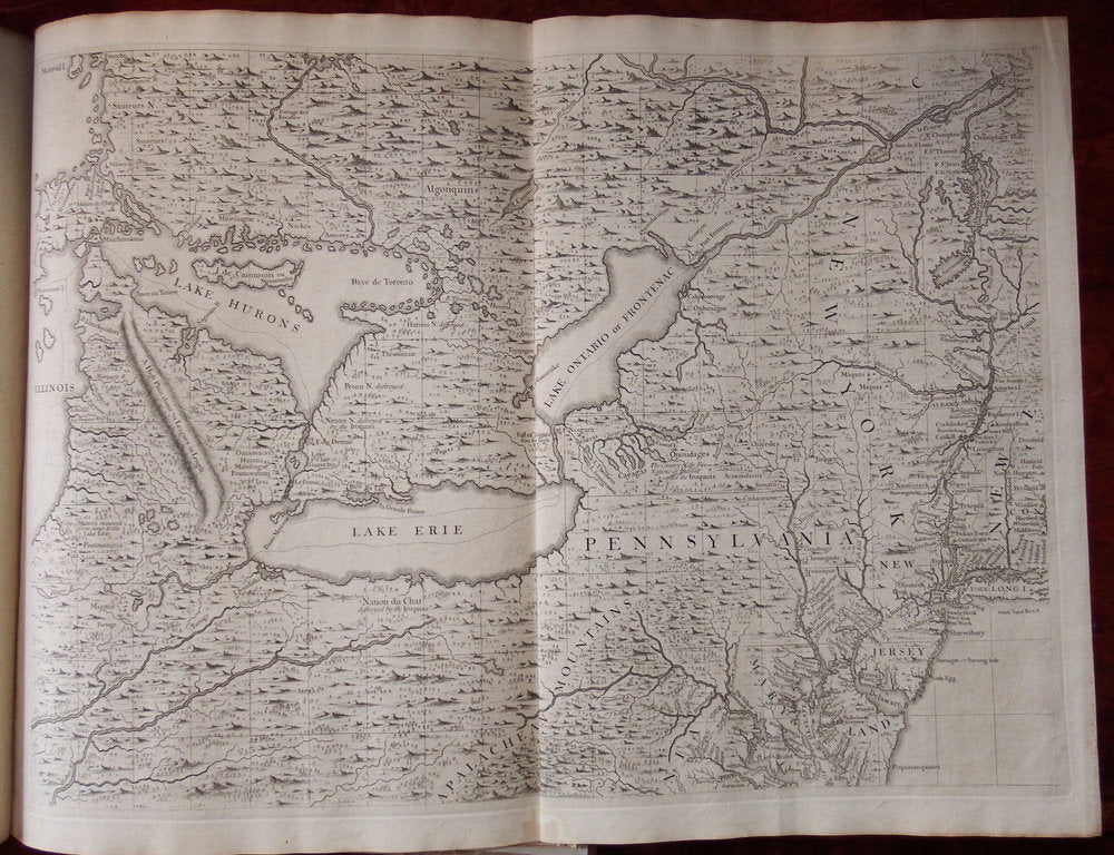 Folio (21 4/8 x 15 4/8 inches). Original RARE letterpress contents leaf (Brabinski State 1, with incorrect enumeration of sheet 13 as XII) laid-down on the front paste-down. Fine engraved folding "key" map with original hand-colour in full (to neat line: 19 6/8 x 19 1/8 inches; Brabinski State 3), 15 exceptionally fine engraved double page and 5 single page sheet maps by William Henry Toms. Expertly bound to style in 18th-century diced half Russia over contemporary marbled paper-covered boards, the spine in seven compartments with raised bands, red morocco lettering-piece in one; modern black morocco backed cloth clamshell box.
