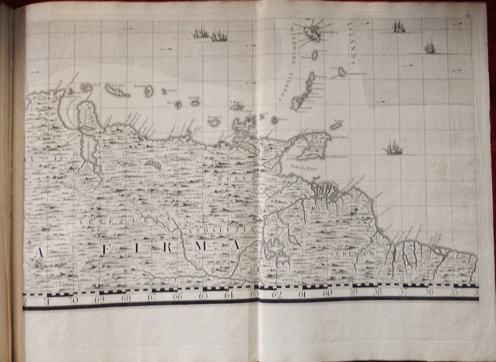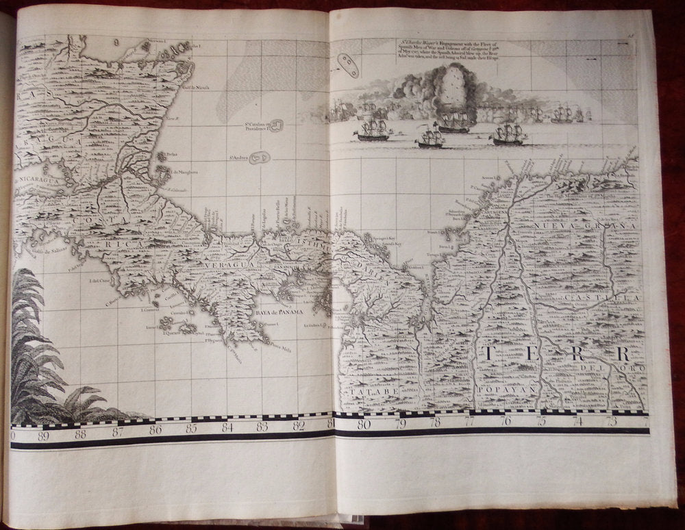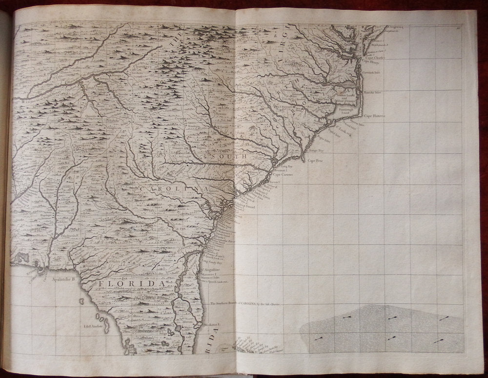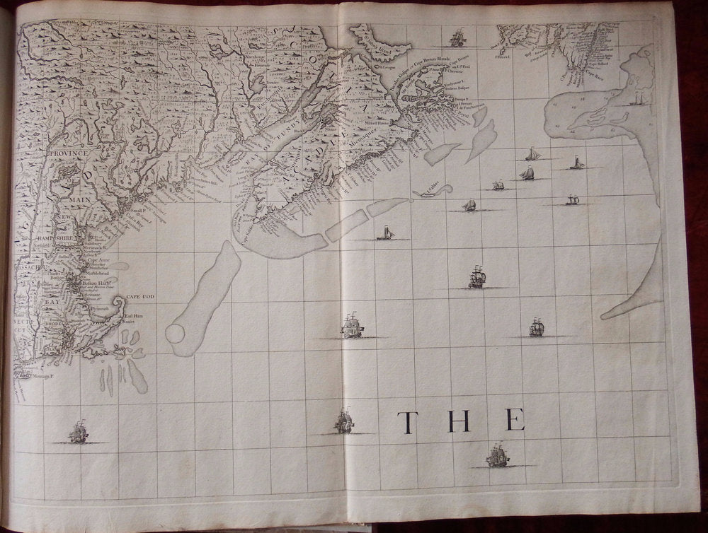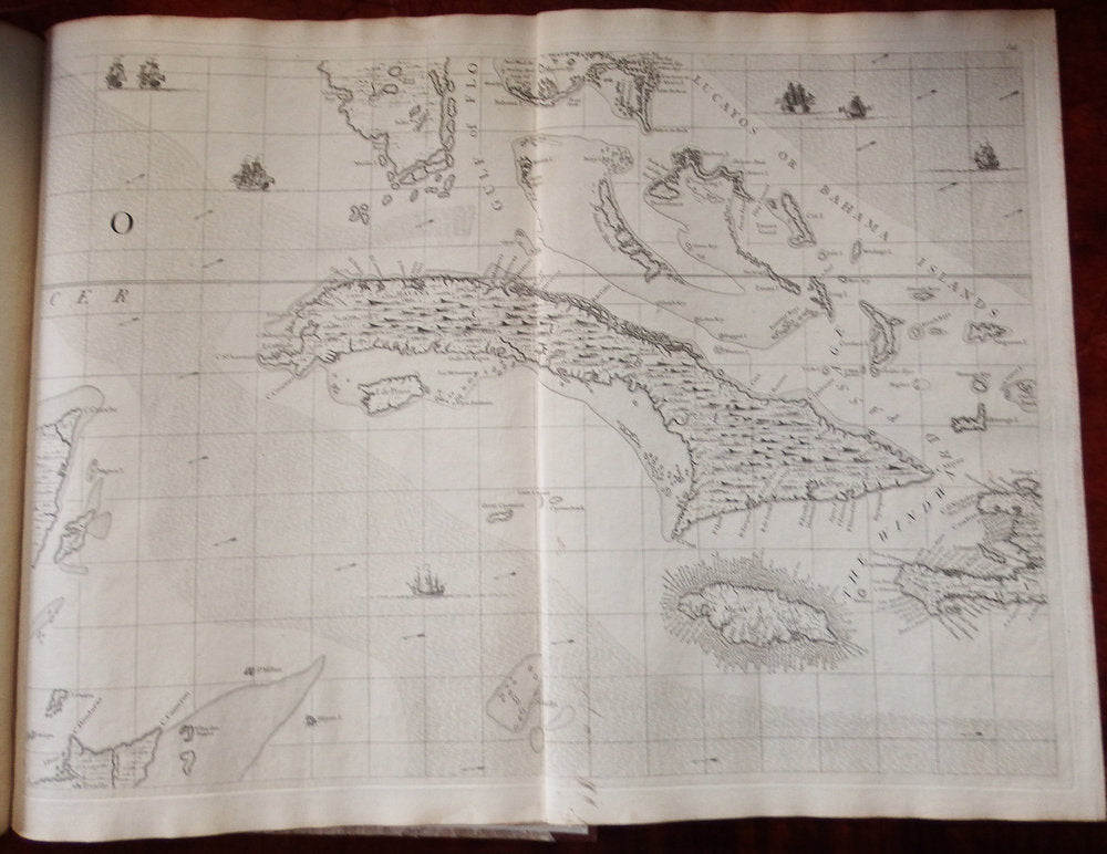 Seventeen detailed charts depict major islands and ports on the American coast and in the Caribbean. Boston, New York and Charleston are included, the latter based on the important inset to Edward Crisp's map of 1711. Numerous legends note historical and topographical features, including the route of Spanish fleet through the Bahama Channel and a vignette depicting the engagement of Sir Charles Wagner against the Spanish off Cartagena.