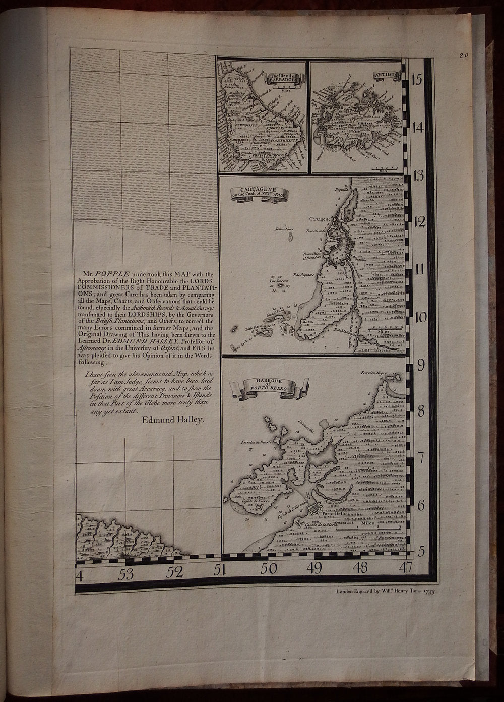 Babinski's State 7, after August 1739, when Toms and Samuel Harding took over publishing the map from Popple. This is the first issue to be published by them, and differs only from the previous issue by the addition of their imprint on sheet 17, and the price: Popple had sold his issues at 4 Guineas (4 pounds, 4 shillings), Toms and Harding reduced it to a more affordable 1 pound, 16 shillings and 6 Pennies.