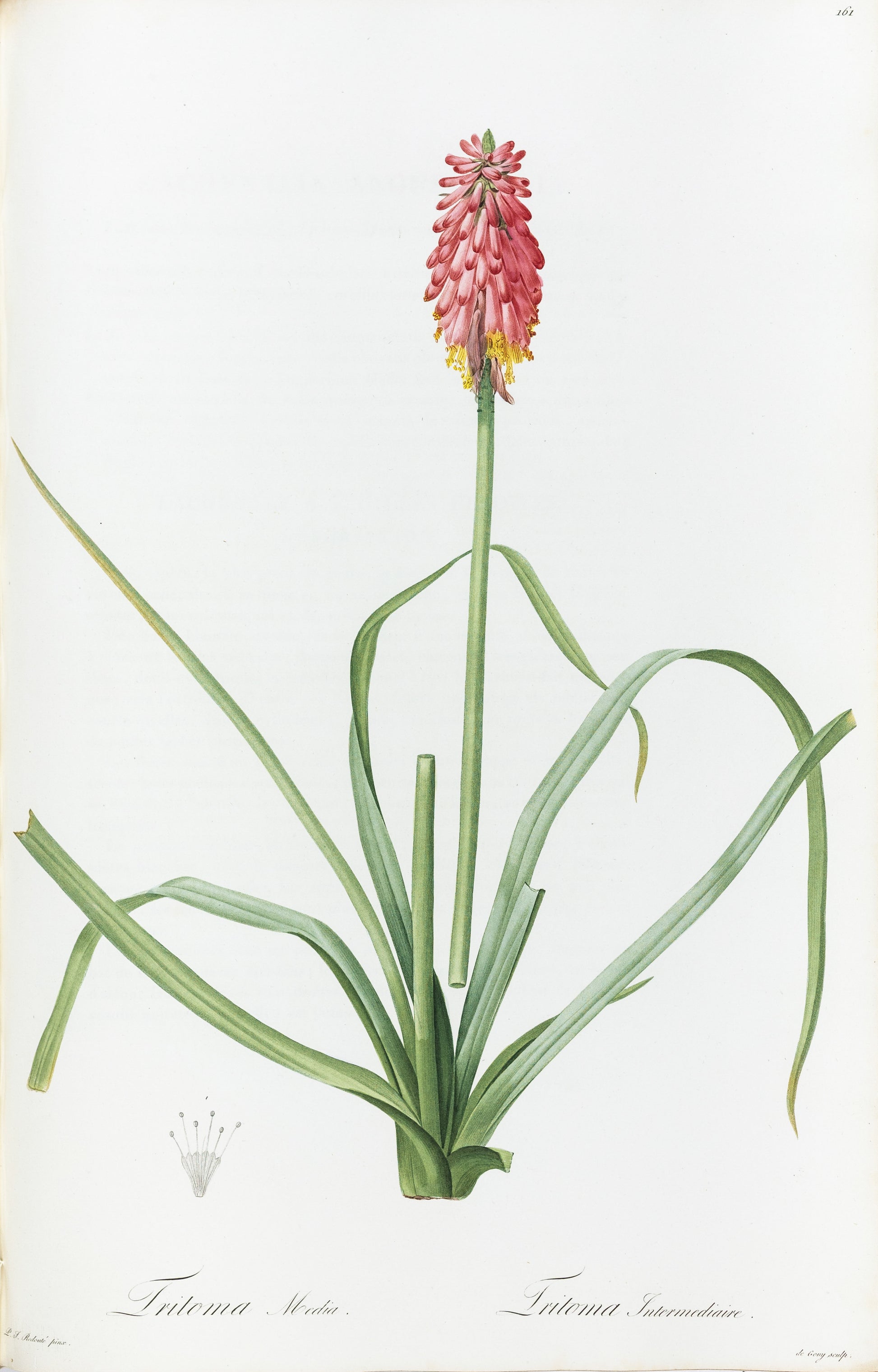 REDOUTÉ, Pierre-Joseph (1759-1840). Tritoma Media, Intermediate Tritoma, Plate 161.