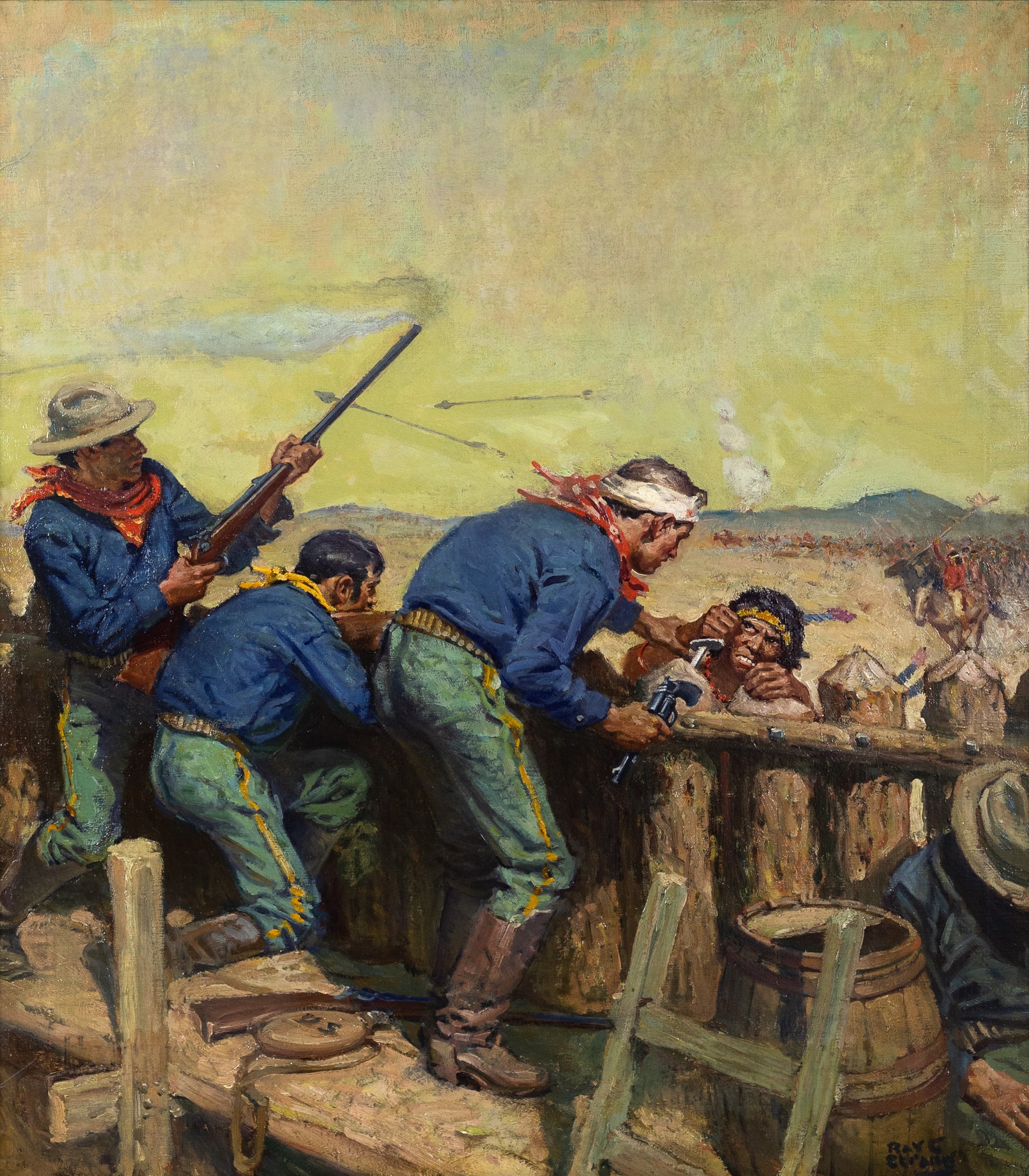 Ray C. Strang (1893-1957) was born in Illinois and developed an interest in art at an early age. He pursued formal art education at the Art Institute of Chicago, where he honed his skills in painting and drawing. His training was interrupted by his service in WWI during which he sustained injuries. Following his service, Strang maintained a long and successful career as an illustrator in New York for various magazines and book publishers. He eventually moved out west and settled in Arizona, where he developed an accomplished oeuvre of "Old West" paintings likened to the skill of Frederic Remington.